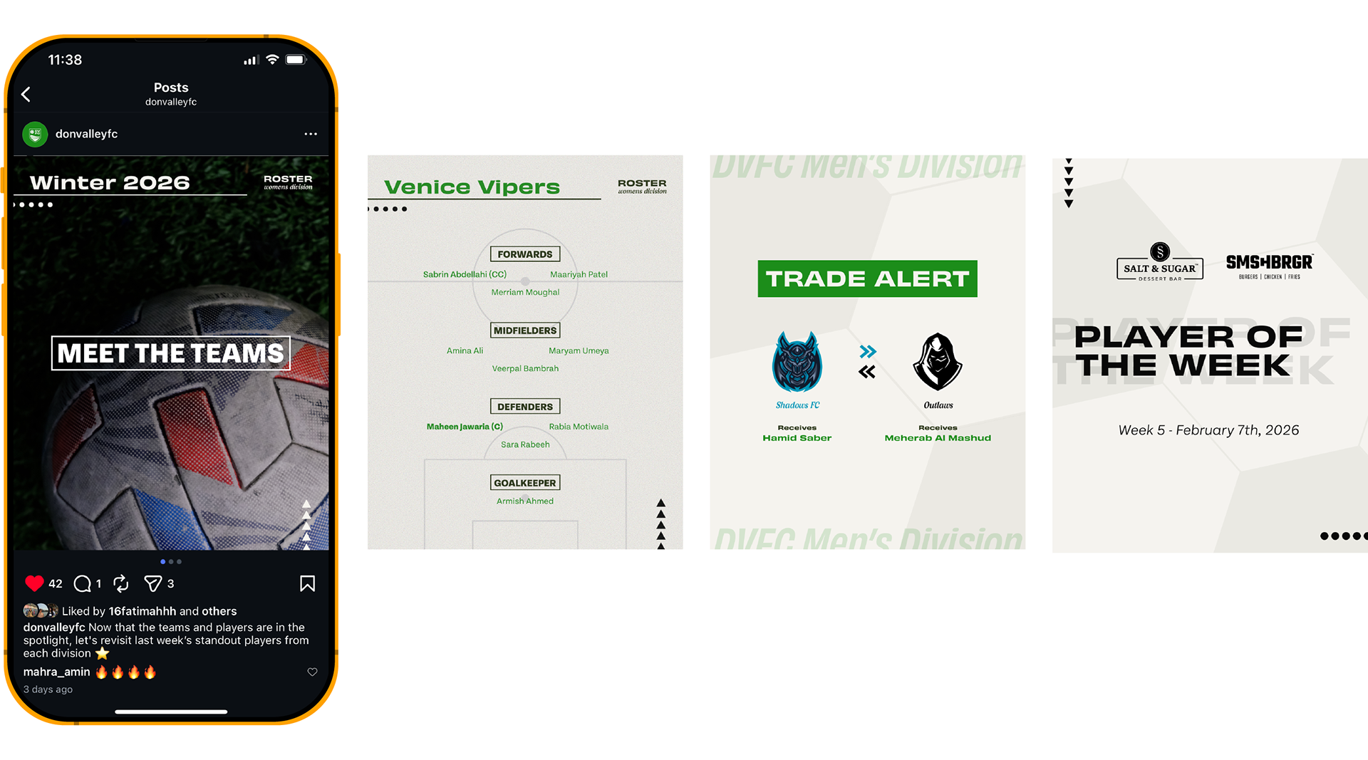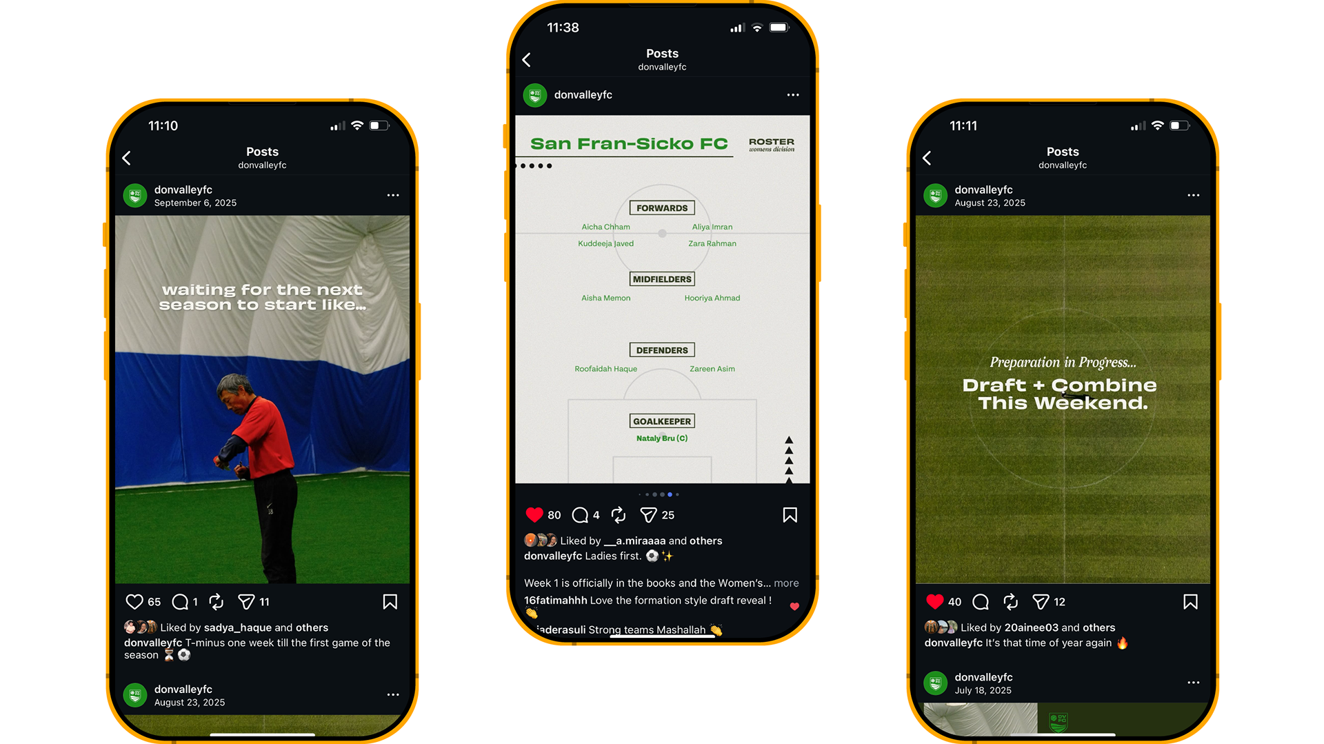 Some people play the game, but I help build it. DVCH is a non-profit organization dedicated to uniting communities by levelling the playing field for everyone. I founded and run the Women's Soccer League, along with a Women's Volleyball Drop-in Program under DVCH, creating a unique space for women to get in the game. On and off the field, I lead the organization’s marketing initiatives to keep the momentum going. Check out some of the content I've created for social!