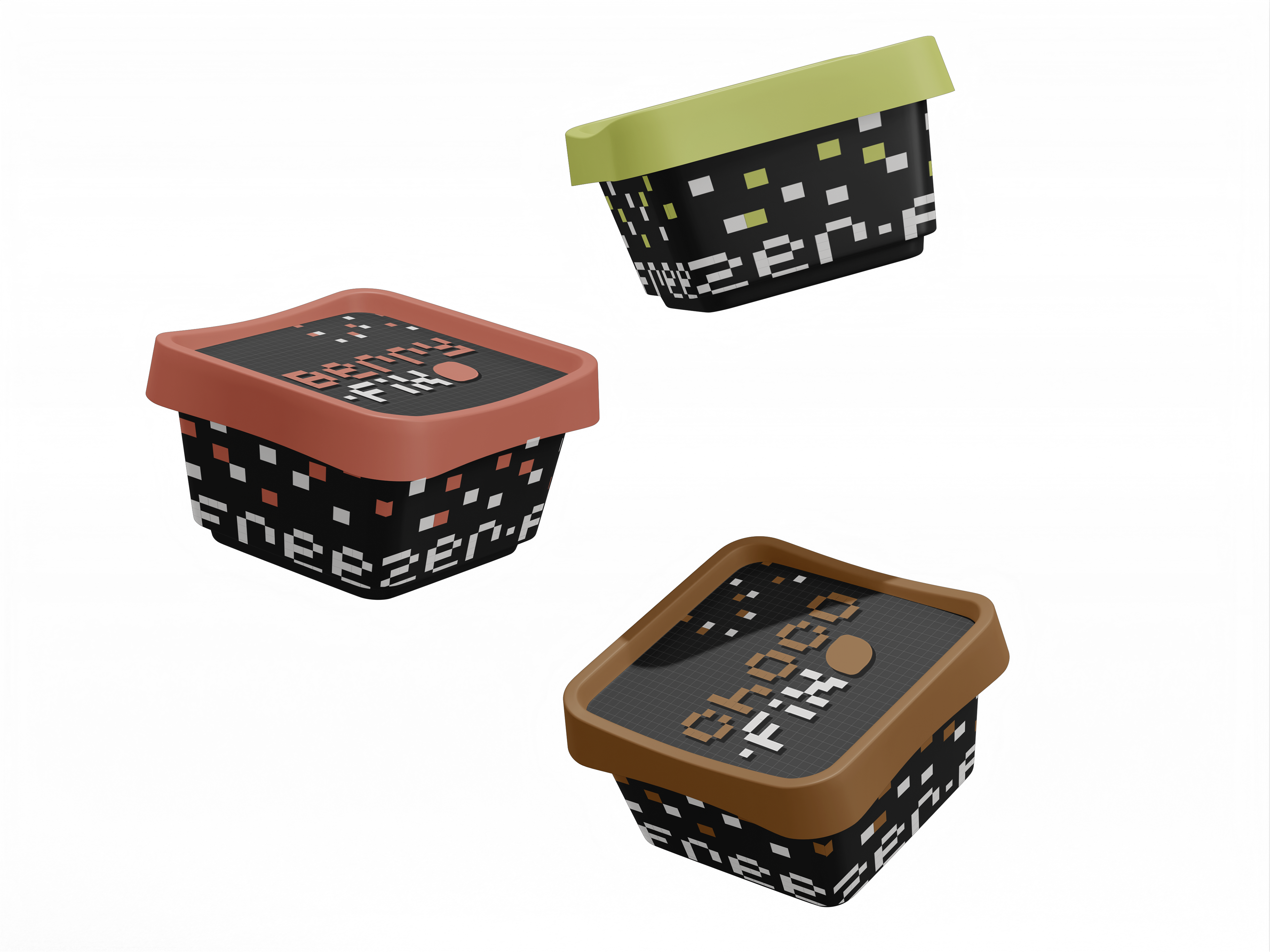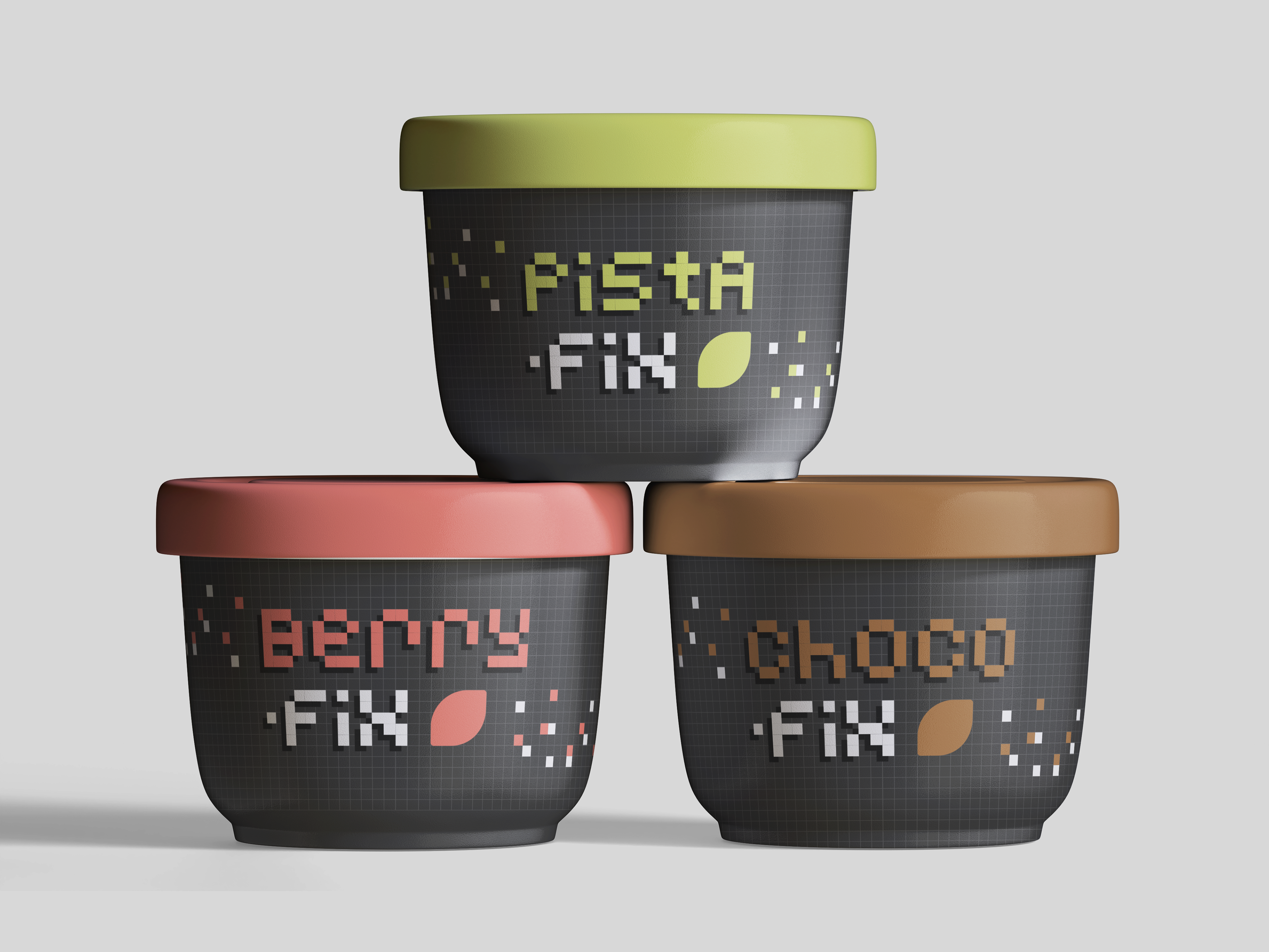Freezer-Fix isn't just ice cream. It's a dose of delicious nostalgia inspired by my mom's community-famous Pistachio and Mango recipes. I took on the challenge to make this comforting treat come to life (on the off chance my mom decides to make this into a business and add more flavours). Tired of seeing the script/handwritten vibes, I went with the 8-bit aesthetic, linking the product to the design: ice = cube = pixel.